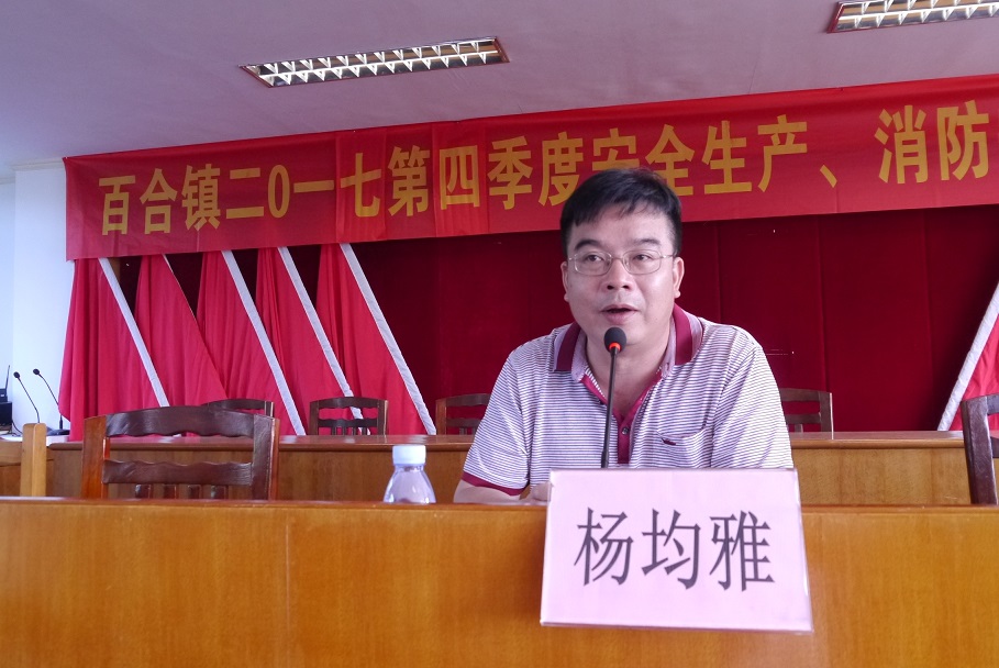10月13日上午,在党的十九大召开前夕,我镇组织召开第四季度安全生产与消防安全工作会议,各村(居)委会、镇安委会各成员单位代表,共计40人参加了本次会议。镇主管安全生产领导、镇人大主席杨均雅同志作了讲话,并针对安全生产工作提出了五点要求,一是要求秋、冬季节要特别注重用电安全,要组织力量全面排查安全隐患,确保生产安全;二是要求通过典型事故案例,告诫与会同志要时刻绷紧安全生产这根弦,坚决防范重特大安全生产事故发生,坚决守住安全生产红线,确保人民群众生命财产安全;三是要求负有安全生产监管职责的各部门、各单位要协同作战,打赢安全保卫战;四是要求各村(居)委会要熟悉各自辖区内的企业生产情况,遇有生产事故要及时上报,并做好初期处理;五是要求持续用力营造良好社会环境,强化安全生产知识宣传、警示教育和舆论引导,营造重安全、讲安全、抓安全的浓厚氛围,让人民群众重视安全生产工作。