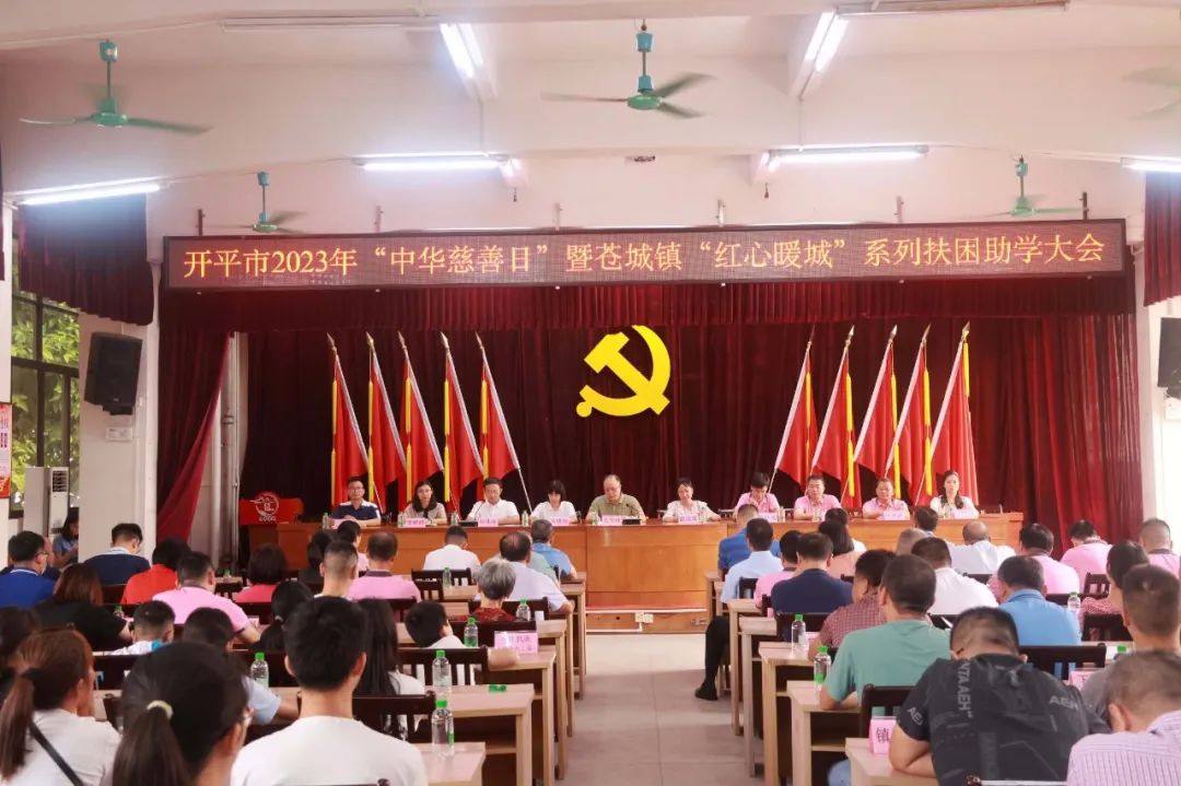 金秋送爽,逐梦远航。为进一步弘扬慈善精神,切实帮助苍城镇家庭困难的学子圆梦校园,8月29日上午,苍城镇在镇政府二楼会场隆重举行开平市2023年“中华慈善日”暨苍城镇“红心暖城”系列活动--2023年苍城镇关工委、苍城商会关工委、“爱心父母”、广东建邦兴业集团有限公司、广东建检工程检测有限公司扶困助学大会。开平市关工委常务副主任温洁莺、开平市慈善会秘书长叶锦媛、苍城镇班子成员、苍城商会理和监事会、爱心父母、广东建邦兴业集团有限公司、广东建检工程检测有限公司代表,镇关工委、开平八中、苍城镇中心学校校长和学校关工委代表,各驻村干部、各村(社区)支部书记(主任)、学生家长代表约140余人参加了活动。 会上,镇人大主席吴国健向关心和支持“红心暖城”的各级领导、爱心企业和社会各界人士表示衷心的感谢,希望各位一如既往地关注和支持苍城慈善事业,一起做大慈善“朋友圈”,擦亮“红心暖城”慈善品牌;同时鼓励受资助的学生要勤奋学习、志存高远、饮水思源,学成归来奉献社会,为建设美丽苍城作出积极贡献。苍城商会会长陈仕超发言表示,商会助学不仅仅是提供资金支持,更是一种关爱和鼓励,让那些面临困境的学生感受到社会的温暖和支持,希望能够激励更多的人积极参与和关注教育公益事业。 镇人大主席吴国健致辞 苍城商会会长陈仕超发言 随后,镇关工委、苍城商会关工委、“爱心父母”、广东建邦兴业集团有限公司和广东建检工程检测有限公司分批发放扶困助学金。本次活动共为72名学生发放助学金15.8万元,其中,镇关工委、苍城商会关工委资助33名学生6万元,“爱心父母”资助16名学生3.3万元,广东建邦兴业集团有限公司资助15名学生4.5万元,广东建检工程检测有限公司资助8名学生2万元。学生代表发言对以上热心单位人士表达了感谢之情和努力学习之心,并希望同学们常怀感恩心,努力学习,成人成才,回报社会,把这份爱心永远传递下去。 苍城镇关工委、苍城商会关工委扶困助学大会 苍城镇“爱心父母”扶困助学大会 广东建邦兴业集团有限公司“助学圆梦”活动 广东建检工程检测有限公司扶困助学活动 学生代表发言 苍城商会一直致力于慈善公益事业,会员企业在发展的同时不忘回馈社会,积极助力镇的扶困助学和奖教奖学工作,而广东建检工程检测有限公司首次为我镇进行扶困助学活动,为表感谢,镇人大主席吴国健和党委委员吴晓怡分别为苍城商会和广东建检工程检测有限公司授予感谢牌。 市关工委常务副主任温洁莺作了讲话,她对苍城镇关心下一代扶困助学工作表示肯定,同时提出三点希望:一是希望同学们心存感恩,奋发向上,做一个德智体美劳全面发展的好学生;二是希望镇和商会关工委继续做好支持帮助贫困学子健康成长工作,为他们的身心健康快乐成长提供保障;三是希望苍城商会和各界热心人士继续发扬仁爱精神,继续擦亮“红心暖城”扶困助学工作品牌。 市关工委常务副主任温洁莺讲话 捐资助学,功在当代,利在千秋。接下来,苍城镇将继续广泛整合慈善资源,汇聚社会各界力量,持续开展各类助学活动,切实为青少年办实事、解难题,助力广大学子成长成才。