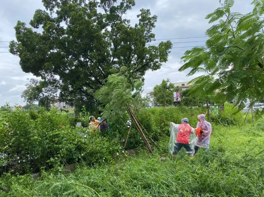 风险排查“零死角” 风“停”不歇,守护家园暖人心 风雨渐歇,赤坎镇马不停蹄地开展灾后恢复工作。在市应急管理局支援下有序组织清理倒伏树木、垃圾杂物;协助受灾群众清理房屋、晾晒物品;与赤坎供电所等有关部门抢修受损的电力、通讯、供水等基础设施。 党旗飘扬,凝聚磅礴力量 在这场防御台风“韦帕”的战斗中,赤坎镇广大党员干部用实际行动诠释了“关键时刻站得出来、危急关头豁得出去”的先锋本色。