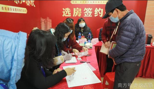 ▲抽签人选定产权调换房房号后携带房号牌在公证员见证下现场签订《赤坎新区产权调换房房号确认书》。之后可离开选房区,选房工作完成