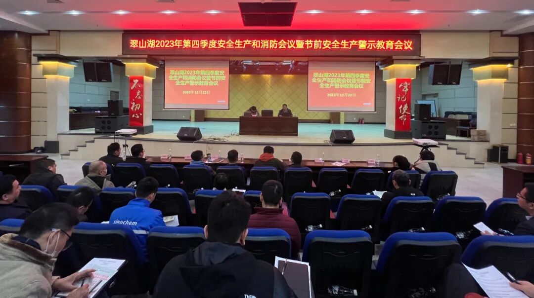12月22日下午,翠山湖管委会召开2023年第四季度安全生产和消防会议暨节前安全生产警示教育会议,翠山湖党工委委员、管委会副主任黄伟深,管委会各部门负责人,翠山湖集团公司、翠山湖派出所、翠山湖消防站有关领导,以及园区企业代表90多人参加会议。
