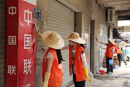 长沙义工分会组织一支10名义工的环保小队走进梁金山社区,重点清理社区“牛皮癣”。
