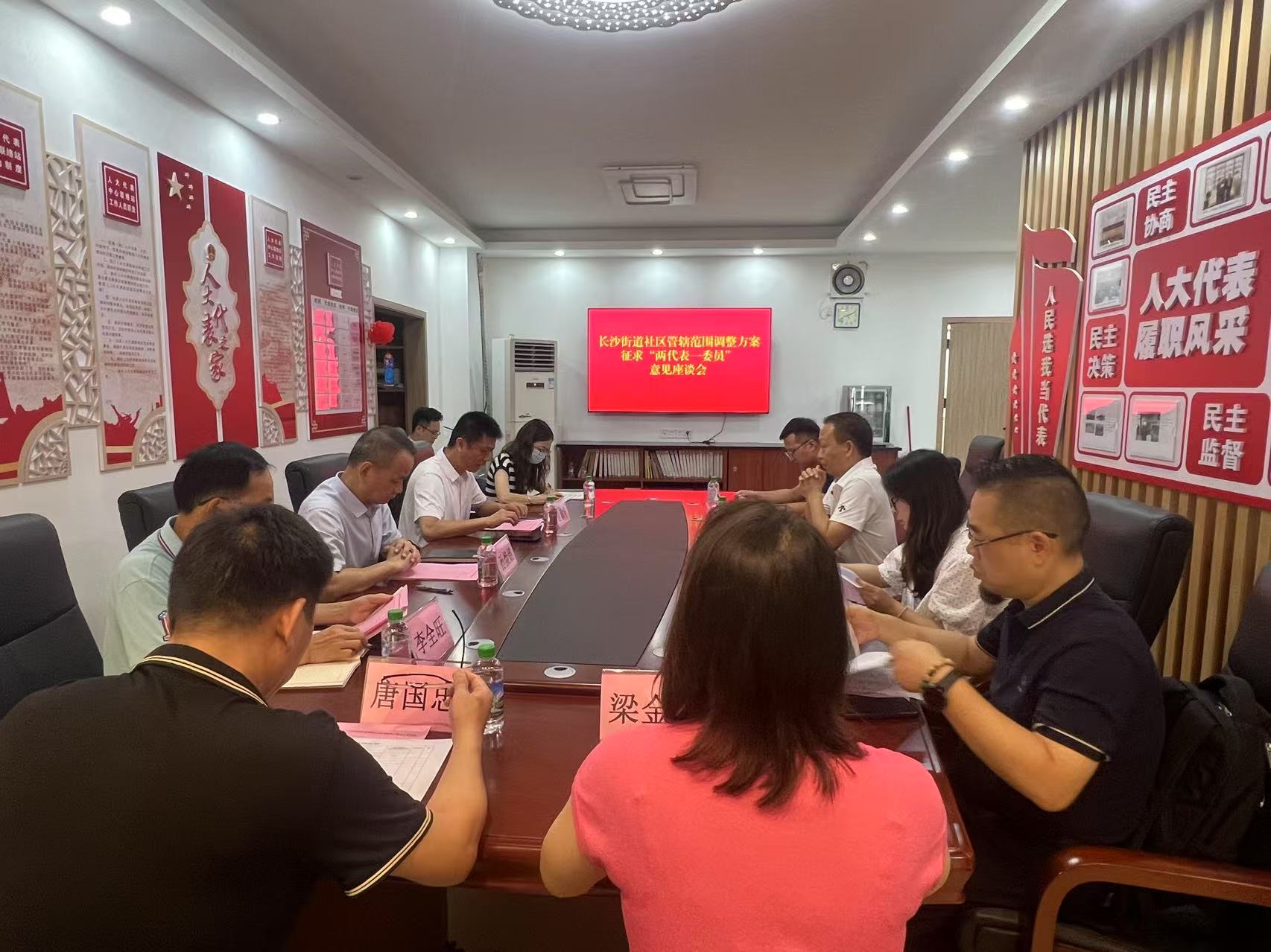 7月31日上午,长沙街道召开社区管辖范围调整方案征求“两代表一委员”意见座谈会。长沙街道人大工委主任孙焕铭、党工委副书记谢添华、人大工委专职副主任李全旺以及部分党代表、人大代表、政协委员围绕拟调整的社区管辖范围方案展开深入讨论,广泛听取意见建议。 谢添华首先就此次长沙街道社区管辖范围调整的背景、总体思路、具体方案及预期目标进行了详细说明。据介绍,随着城市快速发展,部分社区存在管辖范围过大、人口密度不均、公共服务资源配置失衡等问题,影响了基层治理的精准性和居民的幸福感。此次调整旨在结合人口规模、地理边界、历史沿革、资源分布等因素,科学划分社区管辖范围,为居民提供更高效、便捷的服务。 与会的“两代表一委员”聚焦实际需求,围绕调整方案展开热烈讨论,结合辖区人口分布、地理特征、社区边界合理性、公共服务资源覆盖等实际情况建言献策。孙焕铭强调,长沙街道社区管辖范围调整是优化基层治理体系,更好地服务基层、服务群众、提升城市社区管理水平能力的重要举措,旨在让基层治理更精准、居民办事更便捷。 下一步,长沙街道将认真梳理、吸纳各位代表和委员的意见建议,进一步完善调整方案,做到科学决策、民主决策,力争使调整方案既符合城市发展实际,又最大限度满足群众需求,为建设更具温度和活力的长沙贡献基层治理力量。