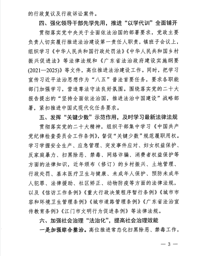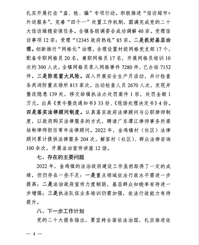 开平市金鸡镇2022年法治政府建设年度报告