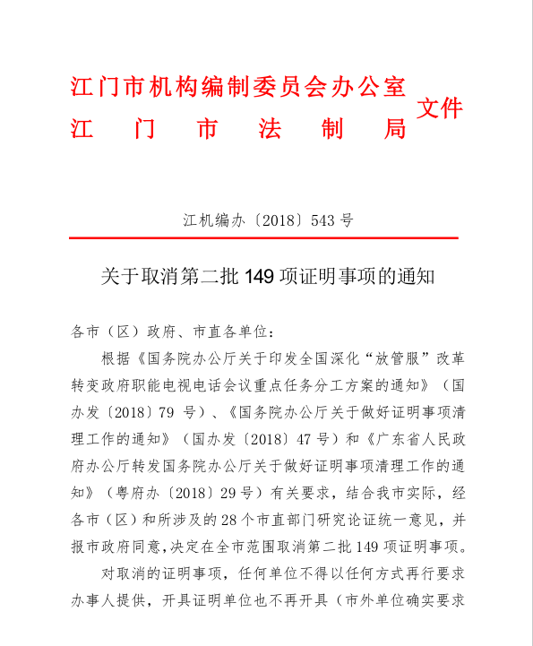 开机编办[2018]31号关于贯彻落实取消证明事项工作的通知