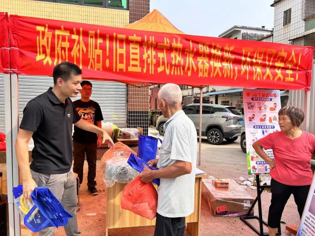 为了引导广大群众主动淘汰直排式燃气热水器,更换符合安全规范要求的热水器,金鸡镇联合燃气企业在金鸡镇市场开展燃气惠民政策宣传活动。群众热情高涨,纷纷前来了解询问优惠政策。镇规建办工作人员向群众派发宣传资料并且详细地讲解关于更换直排式燃气热水器优惠活动的相关细则,着重回答了直排式热水器以旧换新的优惠政策、活动的截止日期、领取补贴的具体操作流程等群众关心的问题。