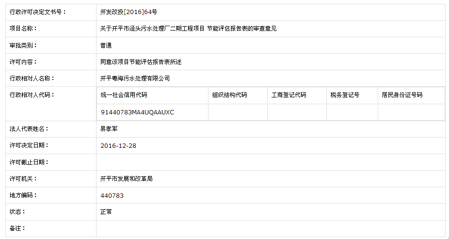 关于开平市迳头污水处理厂二期工程项目 节能评估报告表的审查意见