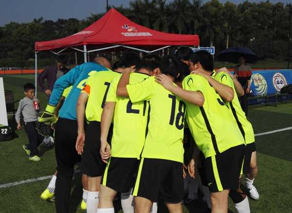 这是一支团结的队伍!不管场上场下,大家相互提醒、相互关心。赢了,分享快乐;输了,互相鼓励!因为我们是一个团队!我们是快乐的足球一家人!