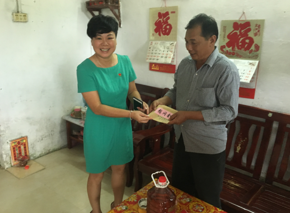 在村委会干部的陪同下,慰问组深入到挂钩帮扶户家中,详细询问了他们家庭生活状况及需要解决的困难,并送上节日的祝福和慰问金、慰问品,并勉励他们一定要树立信心,在党和政府的关怀指导下,努力勤劳工作,争取早日脱贫致富。