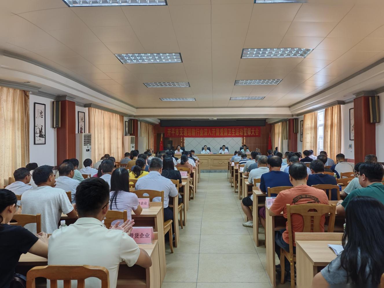 为深入贯彻落实上级关于爱国卫生运动的决策部署,筑牢疫情防控“交通防线”,10月18日上午,开平市交通运输局组织召开全市交通运输行业深入开展爱国卫生运动誓师大会,动员全行业以最坚决的态度、最有力的举措推进以防蚊灭蚊为核心、以清理孳生地为重点,开展为期两周的爱国卫生运动专项行动。市交通运输局全体在家局领导,各股室、执法大队、直属单位以及各客运企业(含网约车)、客运站、城市公交企业、出租车企业、危险货物运输企业、10辆车以上的货运企业、在建交通工程项目、水上运输企业和港口码头企业等代表共105人参加。