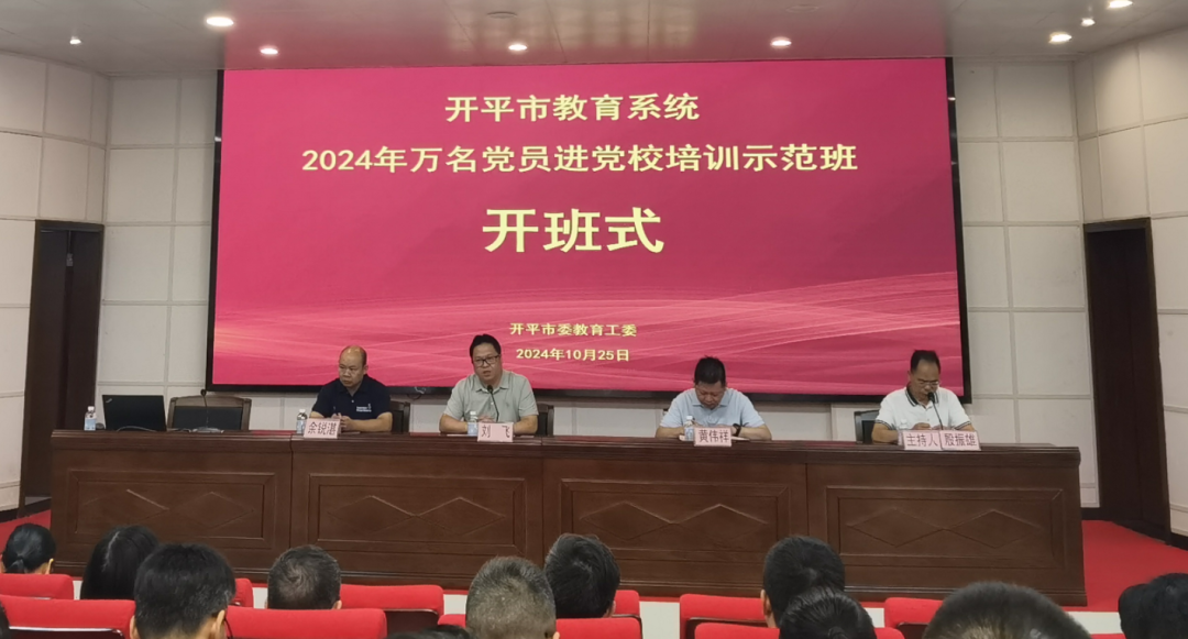 为深入学习贯彻习近平新时代中国特色社会主义思想和党的二十届三中全会精神,贯彻落实全省基层党组织建设强基工程,加强教育系统党的领导,提升学校党组织书记的履职能力,10月25日,开平市委教育工委成功举办教育系统2024年万名党员进党校培训示范班。市委教育工委书记、教育局党组书记、局长刘飞出席开班仪式并讲话。
