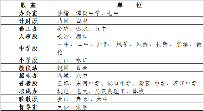 2011—2012学年度第二学期教育局各股室联系基层分工一览表