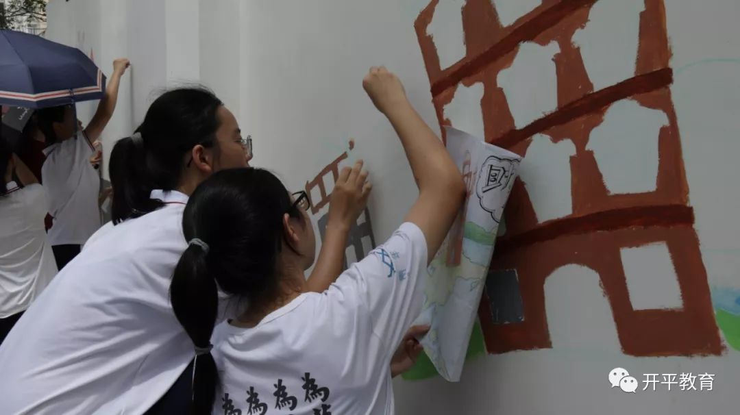 墙绘是一种传统的装饰技法,灵活多变又极具艺术价值,它倡导文明、宣传公益,具有装饰、美化和宣传功能。为丰富学生课余文化生活,激发学生参与创文活动的热情,美化校园环境,为开平市创文添彩助力,6月22日,开侨中学组织200多位同学成功完成了长达60多米的“共创文明家”义务墙绘活动。