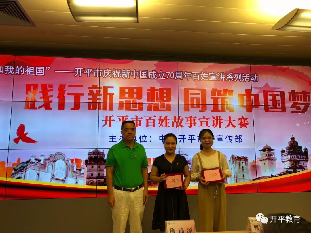 教育系统代表翁笑泳老师的《春风化雨共筑教育强国梦》讲述了教师在平凡的岗位上用坚定的信仰,担当起教书育人的使命,用实际行动诠释了什么是师者仁心、大爱无疆的感人故事,深深打动了每一位评委,喜获第一名,并将代表开平市参加江门总决赛!