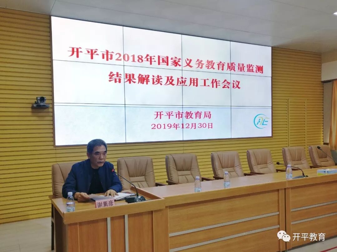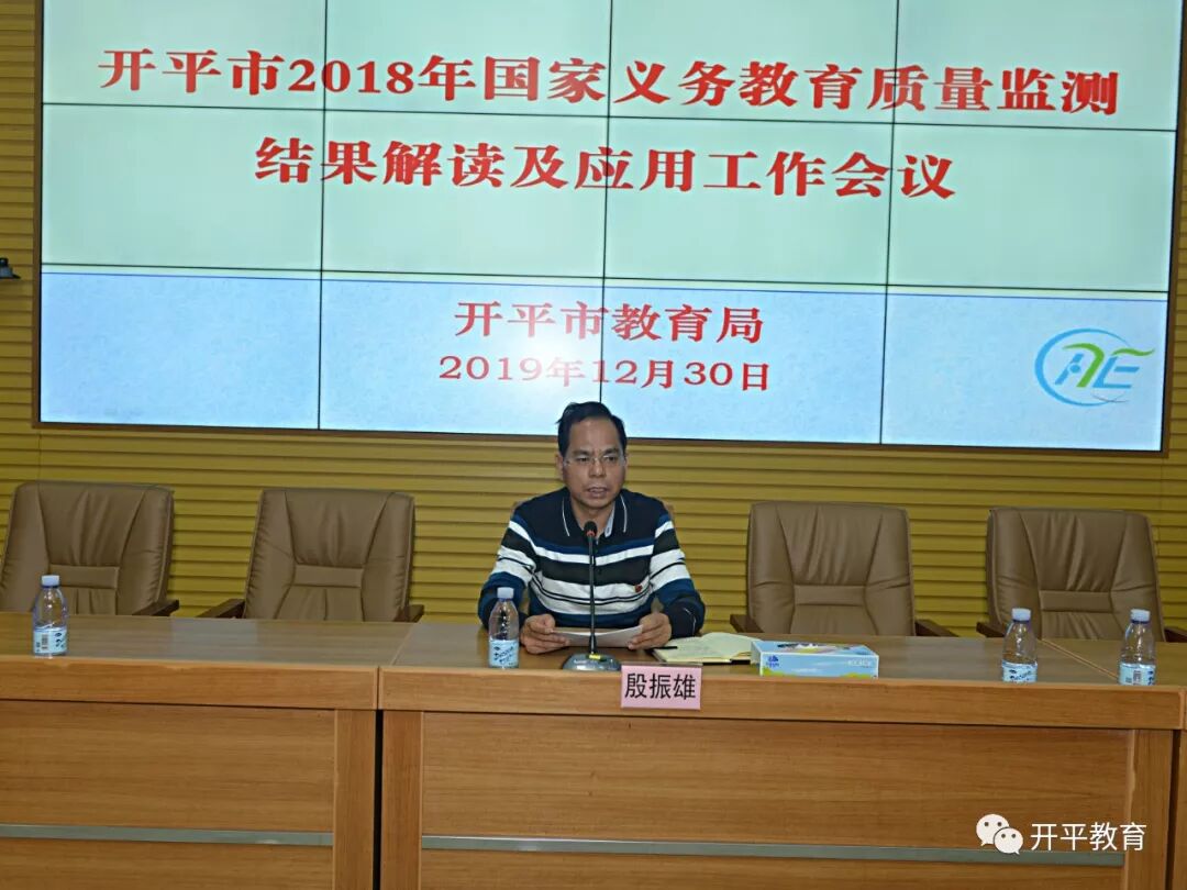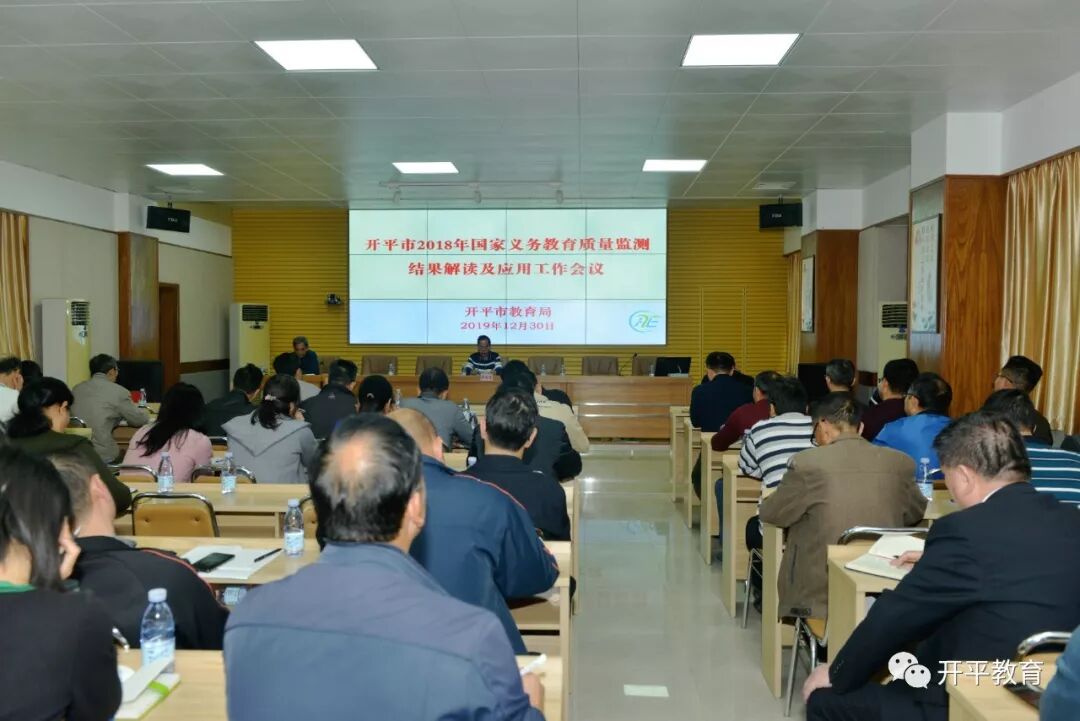 12月30日,开平市教育局组织召开2018年国家义务教育质量监测结果解读及应用工作会议。市教育局副局长殷振雄、教育局相关股室负责人、数学和体育学科教研员,全市中心学校业务干部、义务教育阶段学校业务副校长等共110多人参加会议。