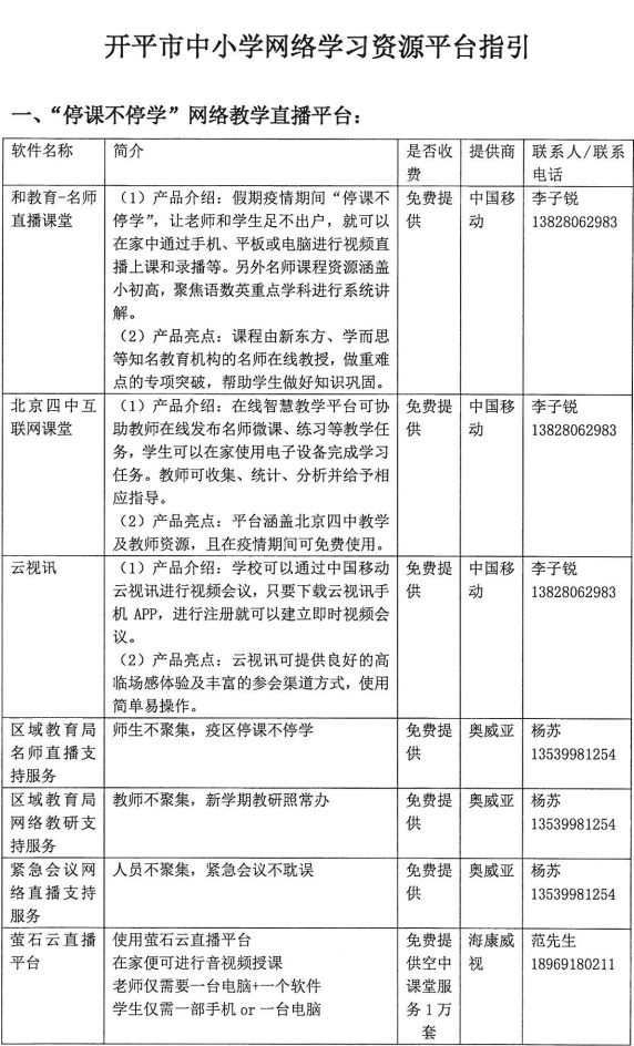 疫情防控期间,开平市教育部门按照“全市一盘棋,优化教育教学资源,汇集各个学校”的原则,设计假期期间网络教学辅导的方案,旨在为学校开展线上教学提供参考及指引。