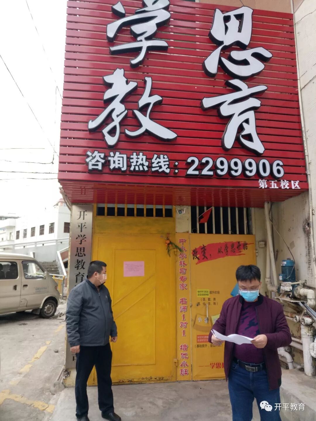 教育局谭钦旋、朱林灿等同志,坚持落实“校外培训(托管)机构在寒假期间必须停止培训、辅导、研讨、研学、托管、排练表演等聚集性教育教学活动”的上级要求,从27日起,深入一线走基层,每天实地抽查60多所校外培训(托管)机构,逐一传达上级精神,派发《通知》,监督确保相关防控措施落实。