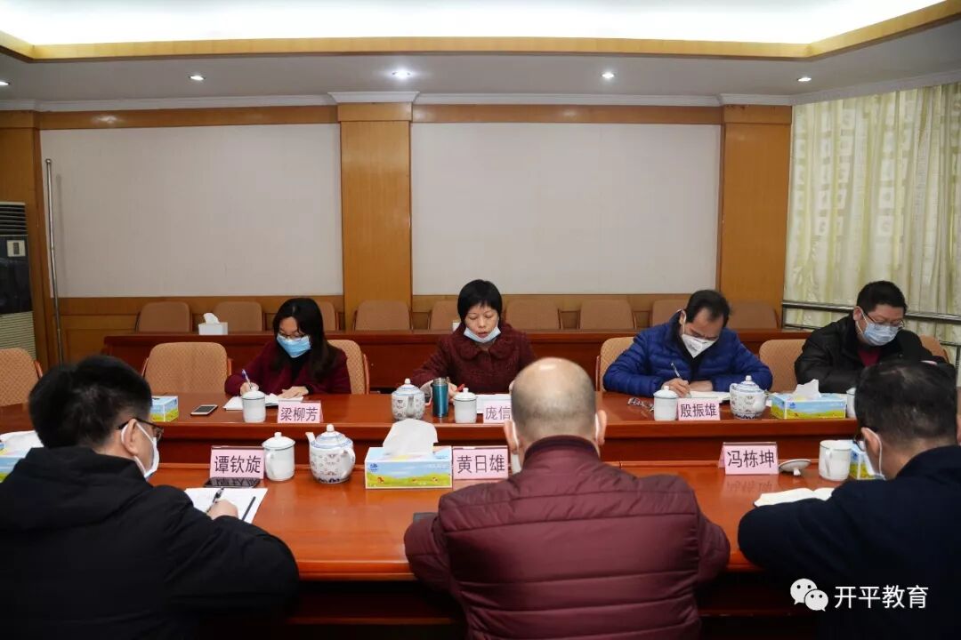 1月25日至今,教育局党组书记庞信明先后召开疫情防控工作会议6次,迅速成立教育局疫情防控工作领导小组,制定《开平市教育系统新型冠状病毒感染的肺炎疫情防控工作方案》(开教办﹝2020﹞8号)文件,按照“依法依规、属地管理、完善机制、合力应对,公开透明、回应关切、依靠科学、有效防治”的原则,全力保护教育系统广大师生身体健康和生命安全。