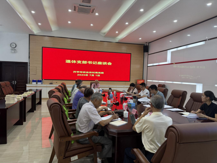 为庆祝中国共产党成立104周年,激发广大老党员继续保持共产党人本色,传承党的优良传统和作风,7月1日上午,开平市农业农村局举办退休支部书记座谈会,并开展“光荣在党50年”纪念章颁发仪式。市农业农村局机关党委书记司徒重诗主持,市农业农村局局长、党组书记邹明夫,各退休支部书记参与座谈。 会议首先学习了习近平总书记在《求是》杂志上发表的重要文章《锲而不舍落实中央八项规定精神,以优良作风引领社风民风》。随后局党组书记邹明夫介绍了市农业农村局近一年的工作开展情况,对各位老领导为开平市农业农村局事业作出的贡献表示感谢,希望大家继续关心和支持农业农村工作。最后,党组书记邹明夫为农办退休支部党龄满50周年的张瑞明同志送上“光荣在党50年”纪念章,并合影留念。 座谈会上,与会人员就一体推进离退休干部政治引领、党的建设、作风发挥、服务保障等开展交流,老同志们纷纷表示,今后将一如既往做到离岗不离党、退休不褪色,继续发挥余热和党员先锋模范作用,支持党的各项工作,为年轻党员树立好榜样。