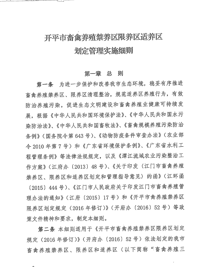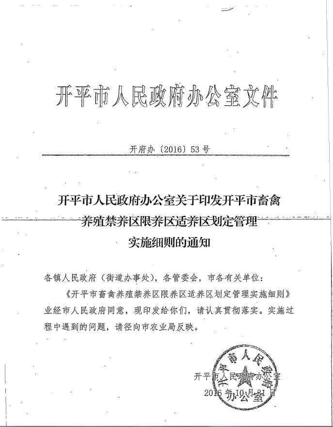 关于印发开平市畜禽养殖禁养区限养区适养区划定管理实施细则的通知