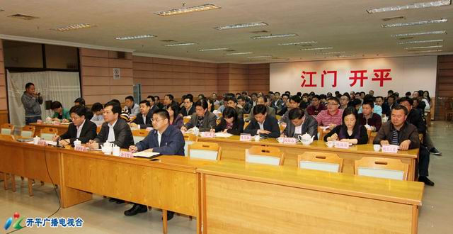 开平市领导黄耀雄、余雪俊、简锦聪以及各镇(街)、相关部门单位负责人在开平分会场收看收听了会议。