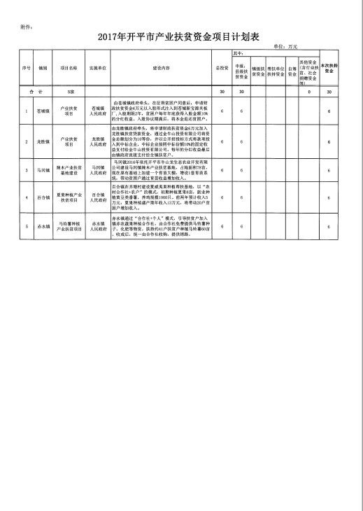 关于下达2017年开平市产业扶贫资金项目计划的通知
