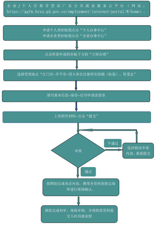 5. 为进一步精简申请材料,人力资源社会保障部门通过“江门市就业实名制信息系统”对申请人的身份情况、用人单位登记注册情况、企业类型、用工备案等信息进行核查。上述对应的申请材料不再需要提供。
