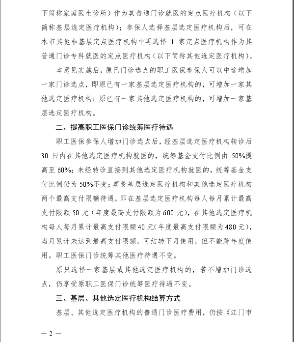 江门市人民政府办公室关于进一步完善江门市职工基本医疗保险普通门诊统筹的意见