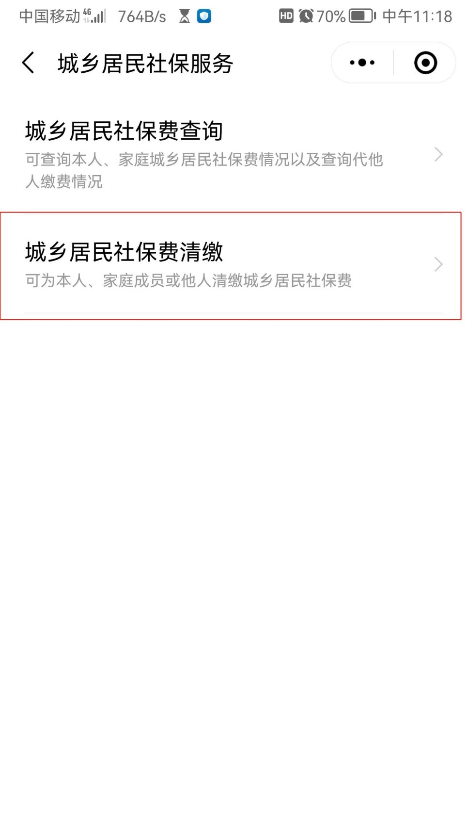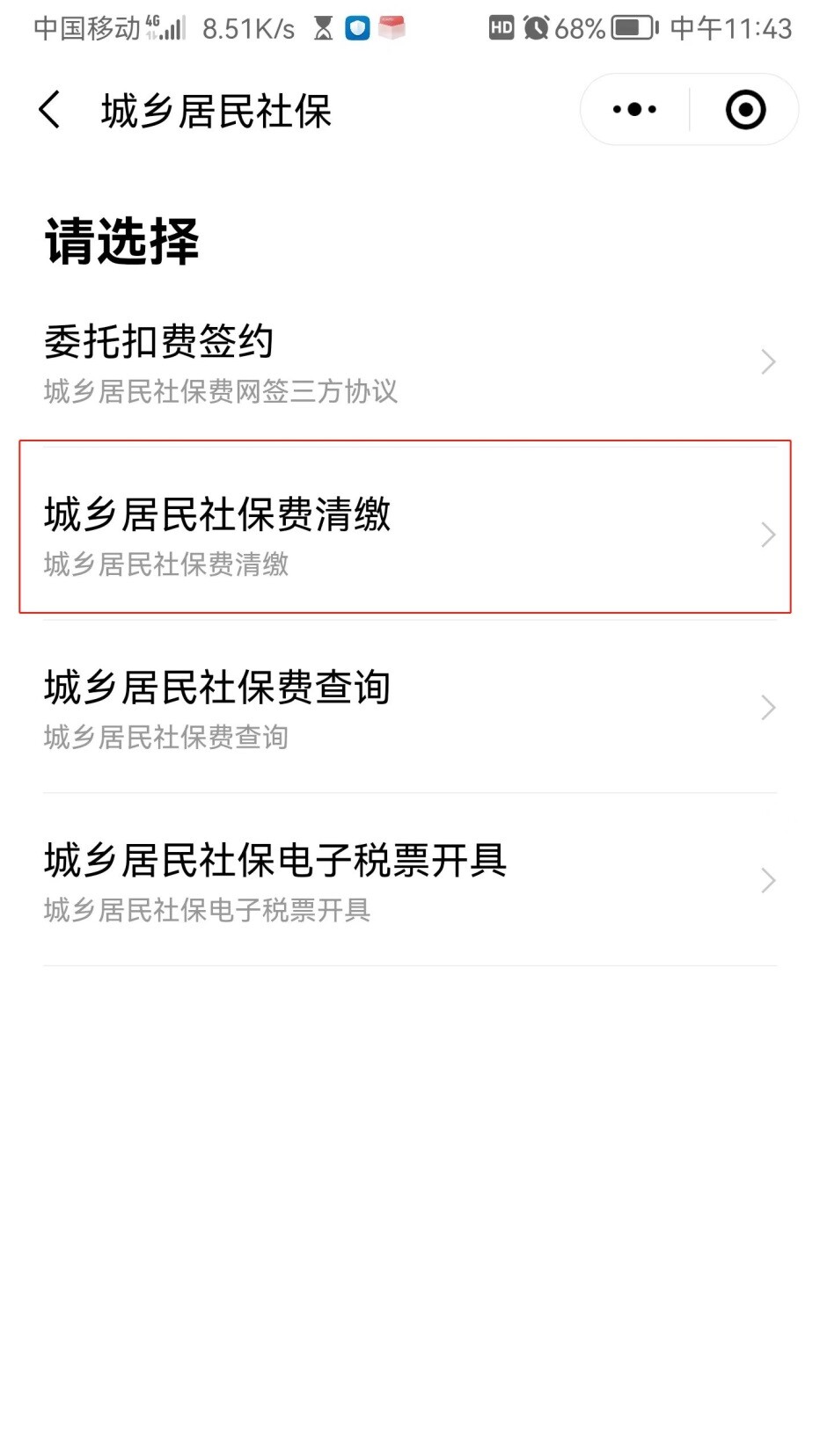 点击“城乡居民社保费清缴”