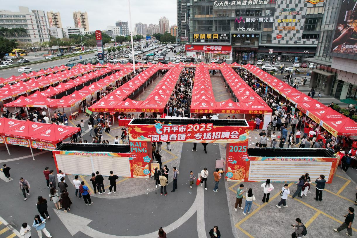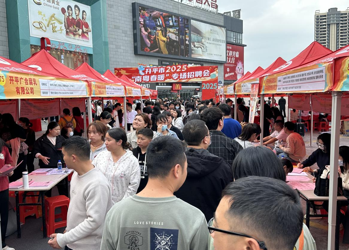 2月15日下午,开平市2025年第二场“南粤春暖”专场招聘会在东汇城东门广场举行,汇聚138家优质企业,带来招聘岗位超3500个。据统计,本场招聘会共吸引近5000人次入场求职,达成初步就业意向985人。搭建起企业与求职者沟通交流的桥梁促进供需方双向奔赴,实现春节后就业与招工的开门红。