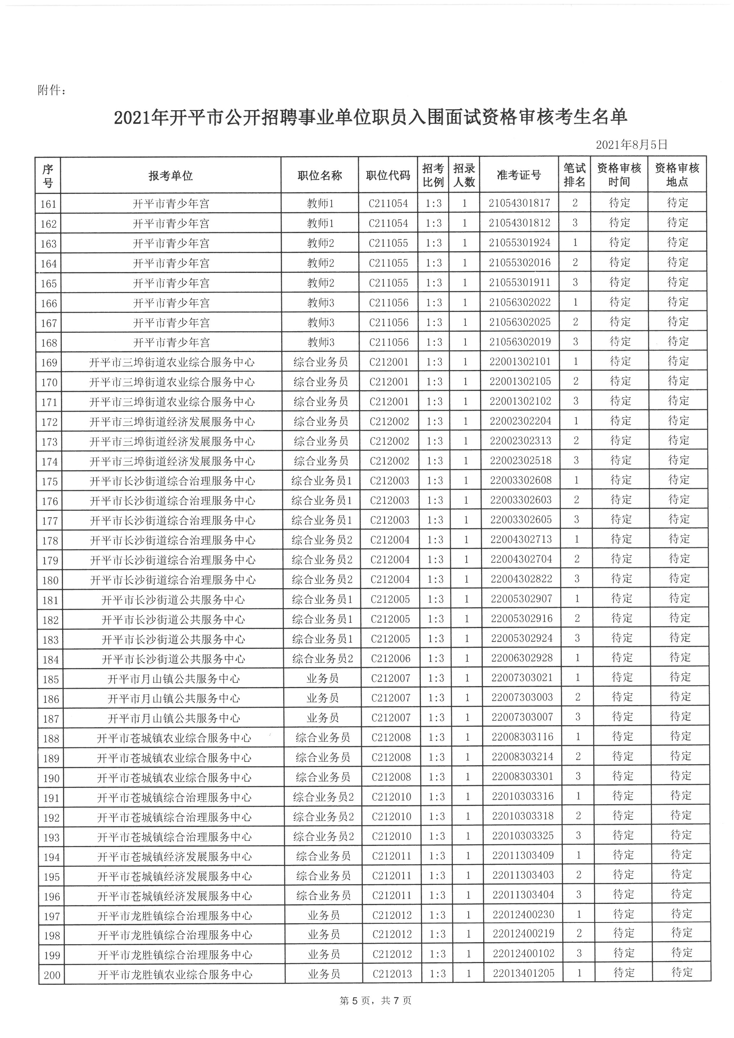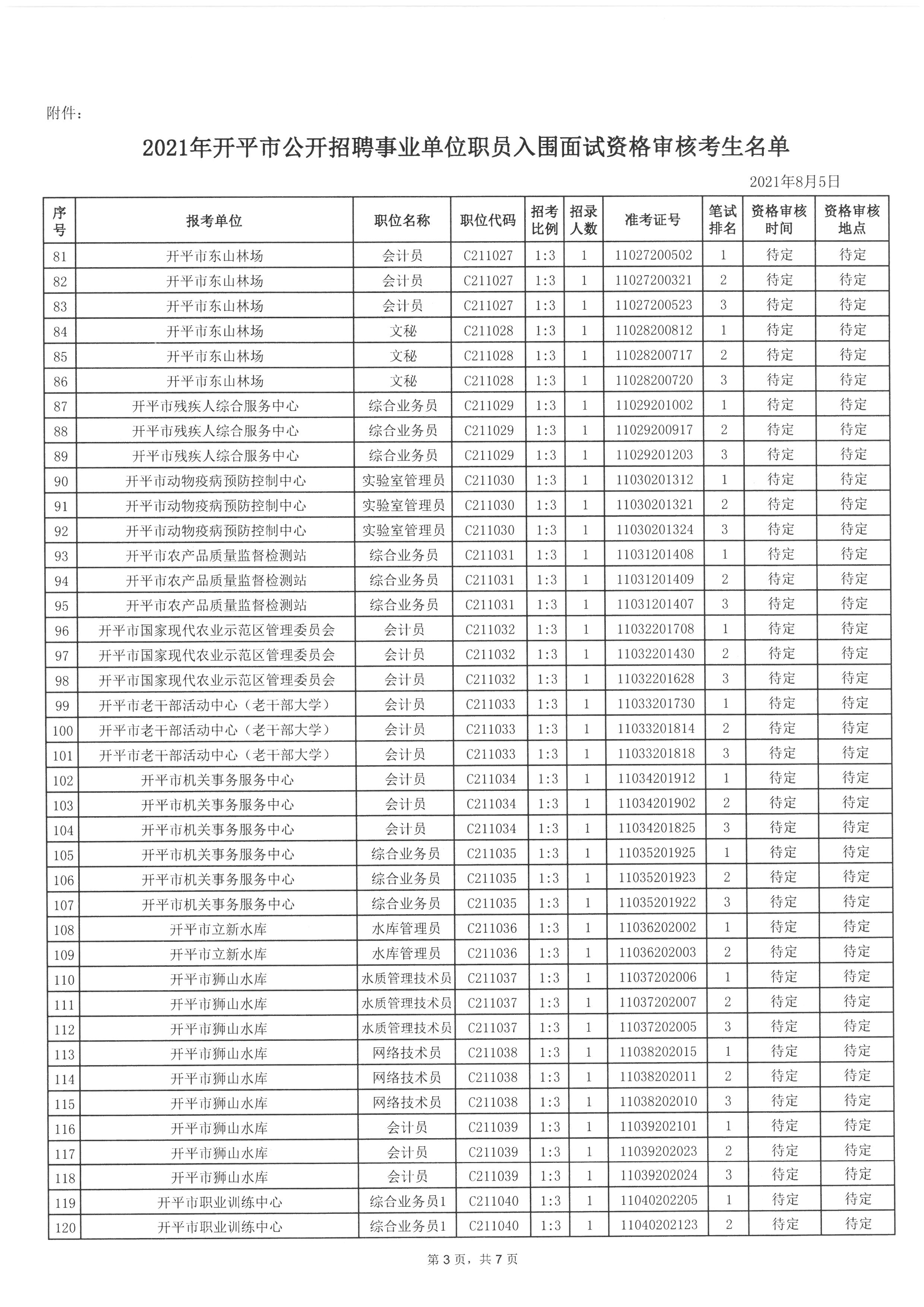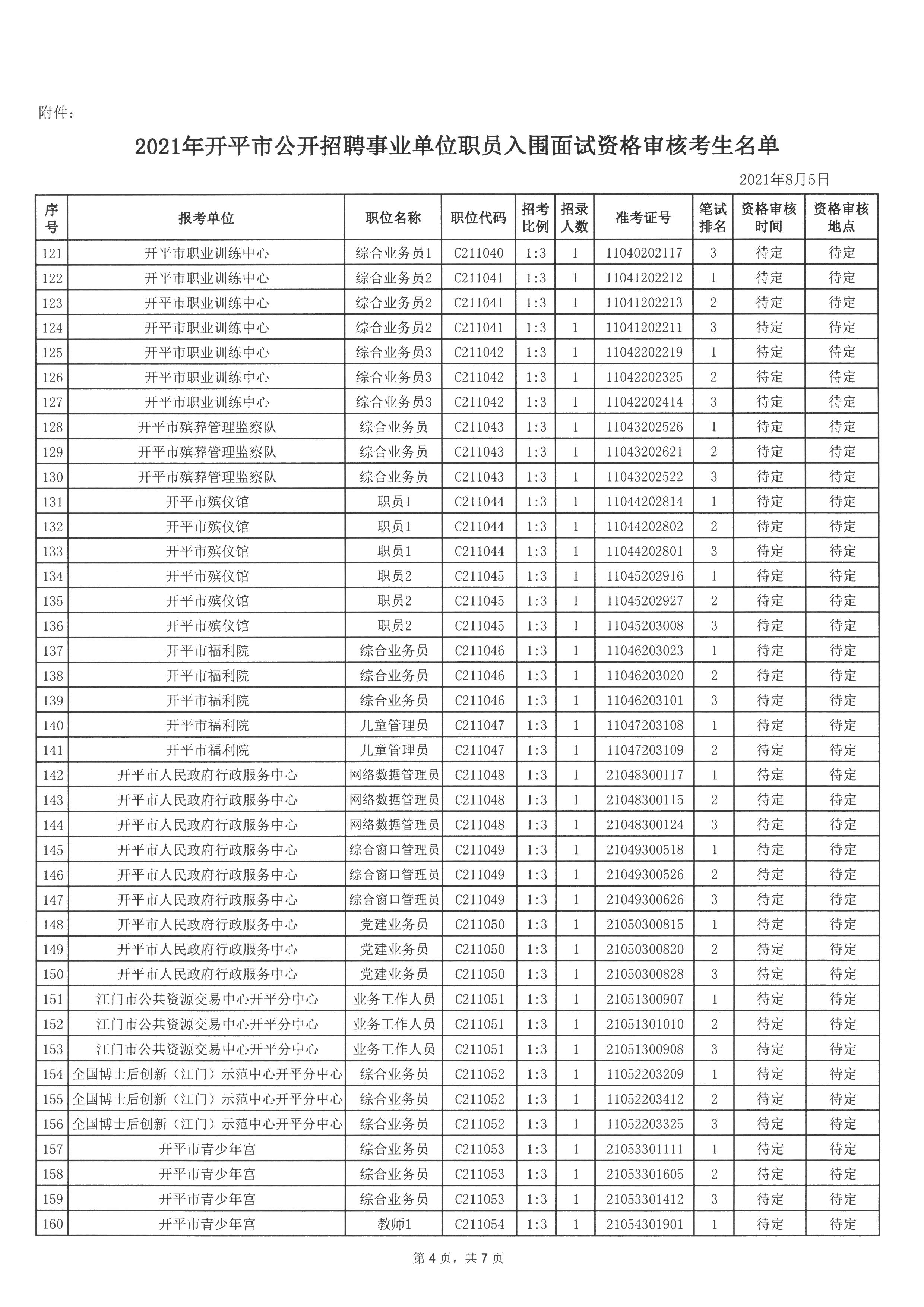 2021年开平市公开招聘事业单位职员笔试合格分数线及资格审核公告