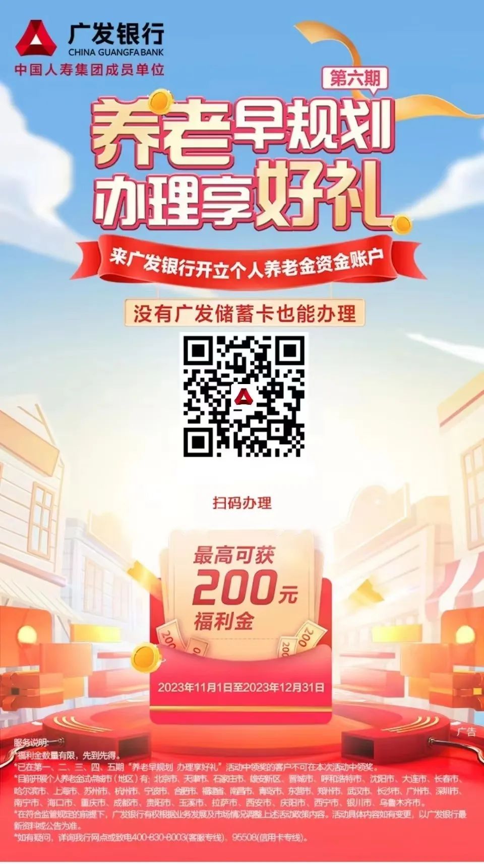 目前,个人养老金正在广州、深圳等36个先行城市试点运行中,江门市为做好个人养老金实施准备工作,部分商业银行(如工商银行、中国银行、建设银行、广发银行等)已开通个人养老金账户业务预约受理,待个人养老金政策在江门市正式施行后,预开户的市民即可往个人账户中缴费和购买个人养老金理财产品。值得注意的是,无论是预开户还是后期缴费,相关商业银行给予了微信立减金、现金红包等福利优惠,小编已搜集江门市部分银行的预开户操作指引和预开户优惠措施供市民参考(备注:具体业务办理及优惠措施以各银行解释为准)。