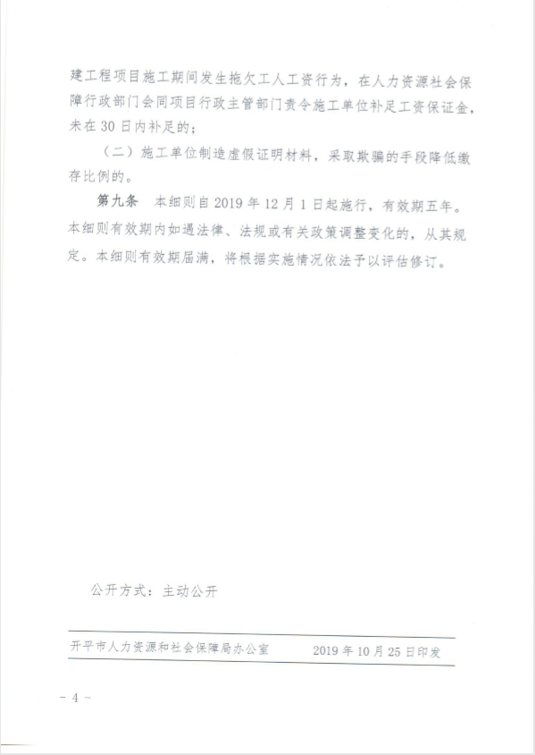 开人社〔2019〕145号 关于印发《开平市建设领域工资保证金差异化管理细则》的通知