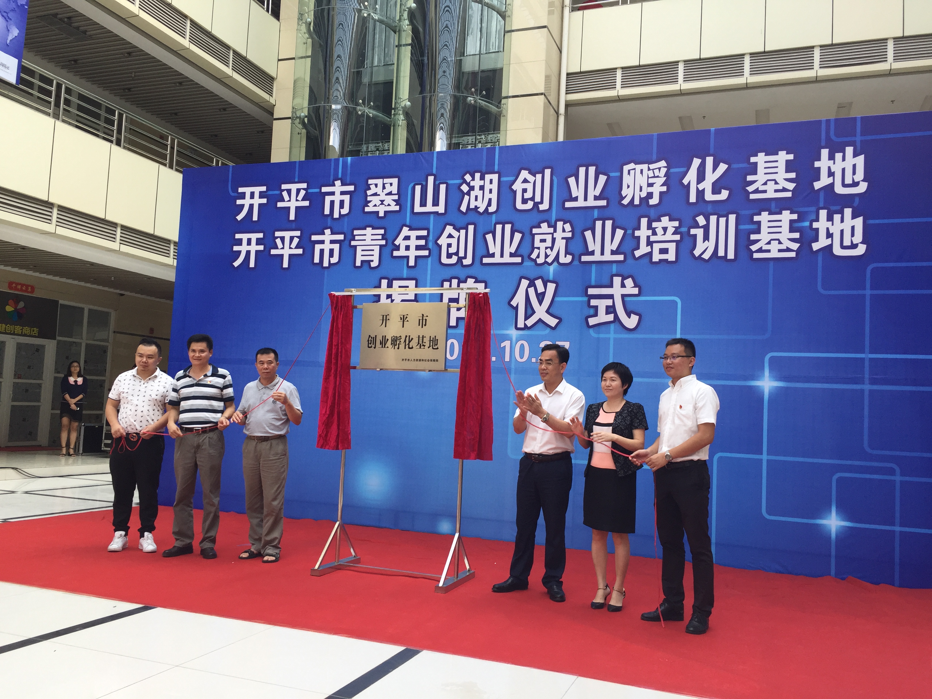 2016年10月27日下午,翠山湖金山创客空间迎来两大盛事,由市人社局、团市委主办的“开平市创业孵化基地”、“开平市青年创业就业培训基地”揭牌仪式在金山创客空间一楼大堂隆重举行,开平市委常委、翠山湖管委会主任凌华威出席了揭牌仪式。