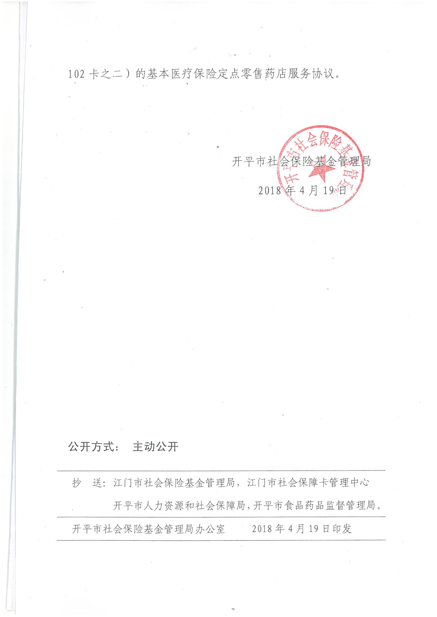 关于终止开平市三埠康泰乐医药商行等2家基本医疗保险定点零售药店服务协议的通知
