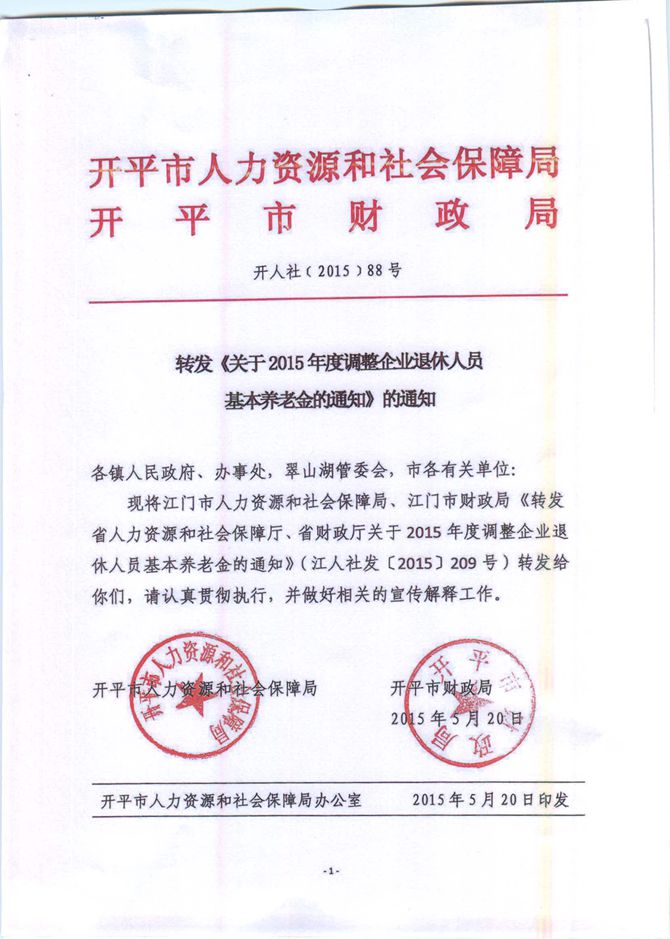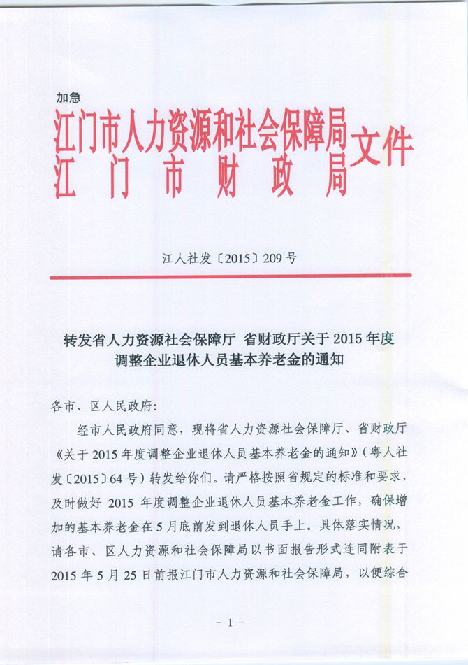 转发《关于2015年度调整企业退休人员基本养老金的通知》的通知