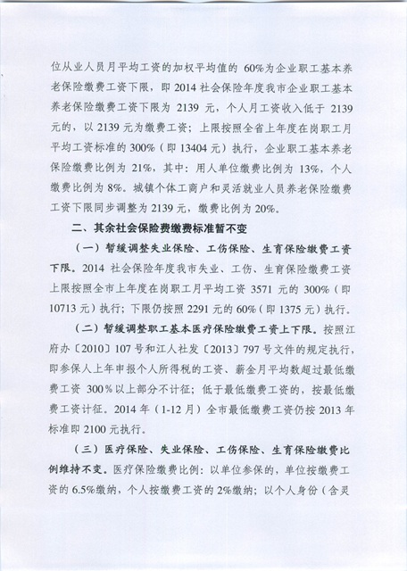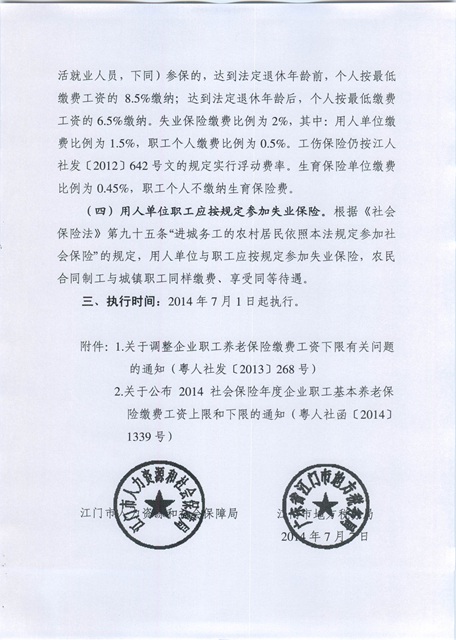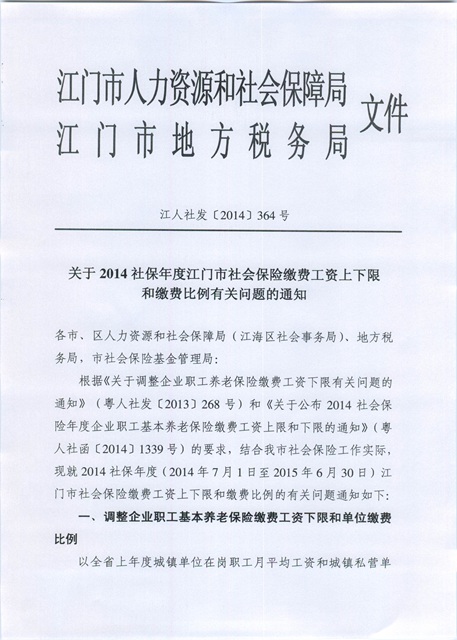 关于2014社保年度江门市社会保险缴费工资上下限和缴费比例有关问题的通知