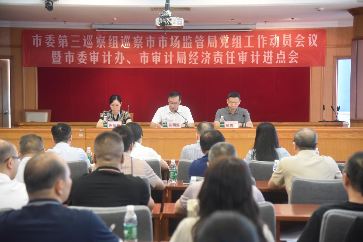 会上巡察组组长梁勇赞作动员部署讲话、明确了巡察工作重点,并提出了巡审工作要求。审计组组长谢菊香宣读了审计通知书、介绍了审计重点内容和巡审工作要求。市市场监督管理局党组书记、局长劳明海同志作了述职报告和表态发言。
