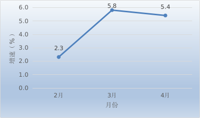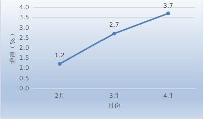 2023年开平市1-4月经济运行简况 1-4月,全市主要经济指标运行简况如下: 一、工业生产 1-4月,开平规模以上工业企业累计完成工业增加值40.89亿元,同比增长5.4%。 分经济类型看,股份制企业增长5.4%;外商及港澳台商投资企业增长6.0%;私营企业增长5.8%。分门类看,采矿业增加值增长28.3%,制造业增加值增长5.6%,电力、热力、燃气及水生产和供应业增加值下降5.8%。 1-4月,全市工业用电量下降3.9%。 图一 2023年2月以来开平市规模以上工业增加值增速 二、投资 1-4月,全市完成固定资产投资同比增长4.9%。从分经济类型看,国有投资下降0.6%;民间投资增长0.4%。分产业看,第一产业投资下降64.7%;第二产业投资增长34.3%,其中工业投资增长34.3%;第三产业投资下降15.4%,其中房地产投资增长6.4%。 三、消费市场 1-4月,我市完成社会消费品零售总额56.97亿元,同比增长3.7%。 图二 2023年2月以来开平市社会消费品零售总额增速 四、财政收入 1-4月,全市实现地方一般公共预算收入9.91亿元,同比增长4.0%,其中税收收入6.09亿元,同比增长24.1%。 五、金融市场 1-4月,全市金融机构本外币各项存款余额888.99亿元,同比增长13.3%;本外币各项贷款余额610.49亿元,同比增长17.6%。全市金融机构人民币各项存款余额868.64亿元,同比增长13.7%;人民币各项贷款余额608.68亿元,同比增长17.8%。 六、外贸进出口 1-4月,全市外贸进出口总额47.6亿元,同比下降16.8%。其中,进口4.2亿元,同比下降8.9%;出口43.4亿元,同比下降17.5%。 2023.5.31