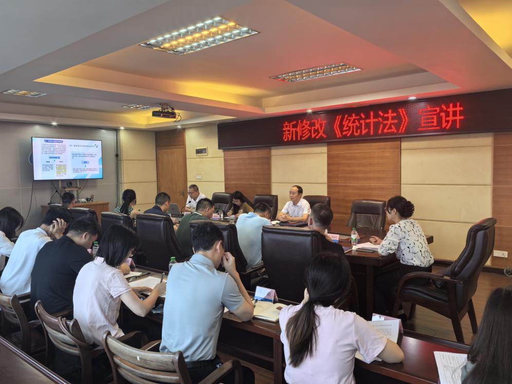 为全面贯彻落实新修改《中华人民共和国统计法》,扎实推进依法统计、依法治统,近日,市统计局组织召开新修改《统计法》培训会,邀请江门市统计局党组成员赵前斌、法规执法科科长谭锦标作专题讲座,市统计、发改、科工商务、住建、农业农村局有关负责同志,以及各镇街分管统计负责人参加培训。 培训会结合统计实务和最新要求,对新修改《统计法》进行全面解读,重点讲解加强统计监督、强化防范和惩治统计造假责任、加强统计信息共享等方面内容,并对近年来国家统计局查处的统计违纪违法典型案例进行剖析,深刻揭示统计造假的极端危害性,要求大家严格遵守统计法律法规,坚决抵制统计造假、弄虚作假的行为,切实维护统计数据的真实性与权威性。 通过本次学习,参训人员对新修改《统计法》有了更加深刻的认识和理解,进一步提升了统计法治意识。下一步,市统计局将继续加大宣传力度,组织深入基层开展专题授课,努力营造新修改《统计法》学习宣传和贯彻实施的良好社会环境和舆论氛围,为进一步提高统计数据质量提供坚实统计法治基础,为加快推进全市经济社会高质量发展保驾护航。