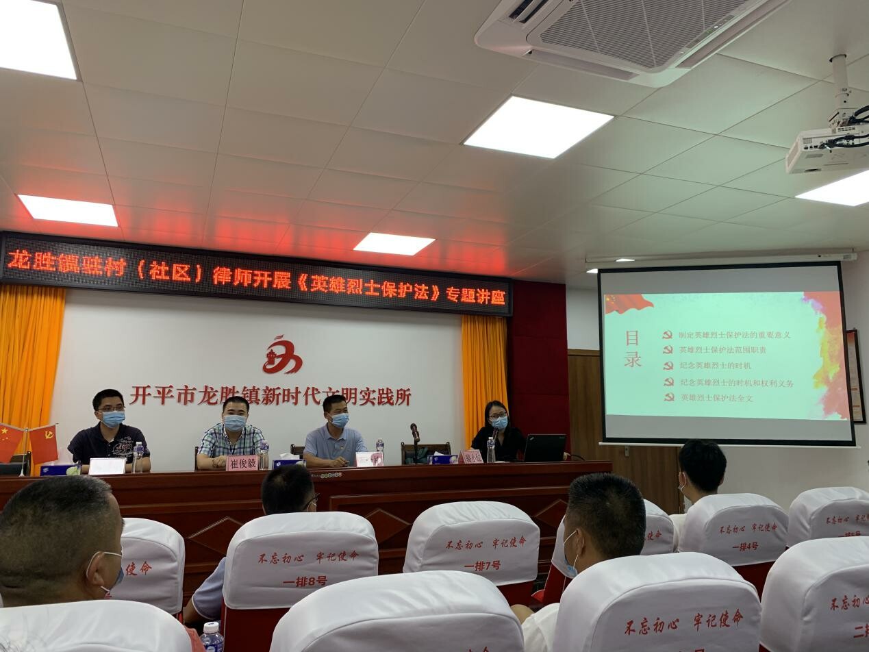 饮水思源,不忘来路。习近平总书记指出:“实现我们的目标,需要英雄,需要英雄精神。我们要铭记一切为中华民族和中国人民作出贡献的英雄们,崇尚英雄,捍卫英雄,学习英雄,关爱英雄。”为了进一步传承英烈精神,加强对英雄烈士的保护,培育和践行社会主义核心价值观,激发实现中华民族伟大复兴中国梦的强大精神力量,近日,开平市龙胜镇组织驻村(社区)律师在龙胜党校开展《中华人民共和国英雄烈士保护法》专题会议讲座。