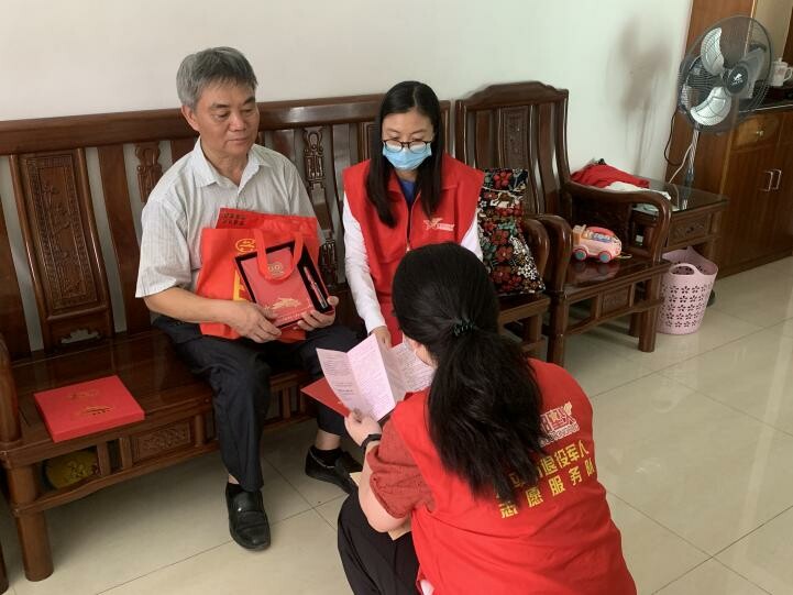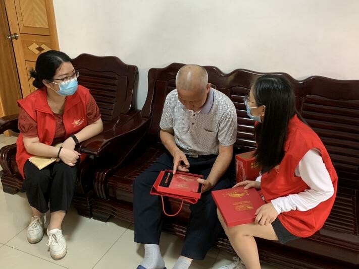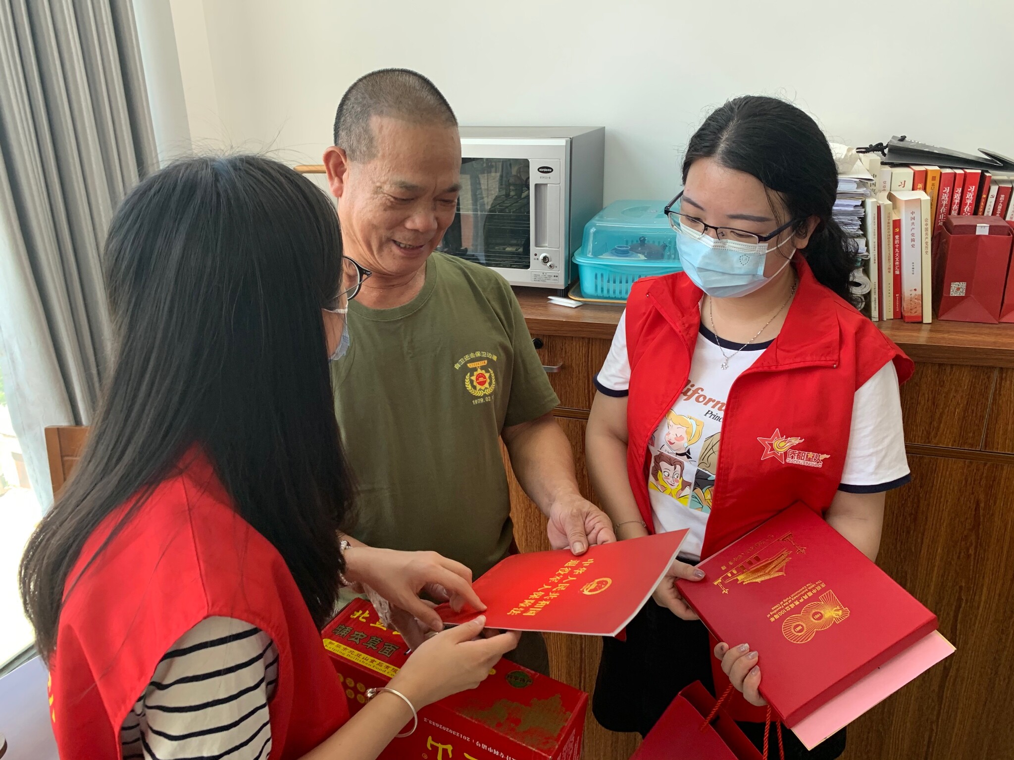 向功臣送上建党100周年定制笔记本 向功臣讲解广东省应急救助政策