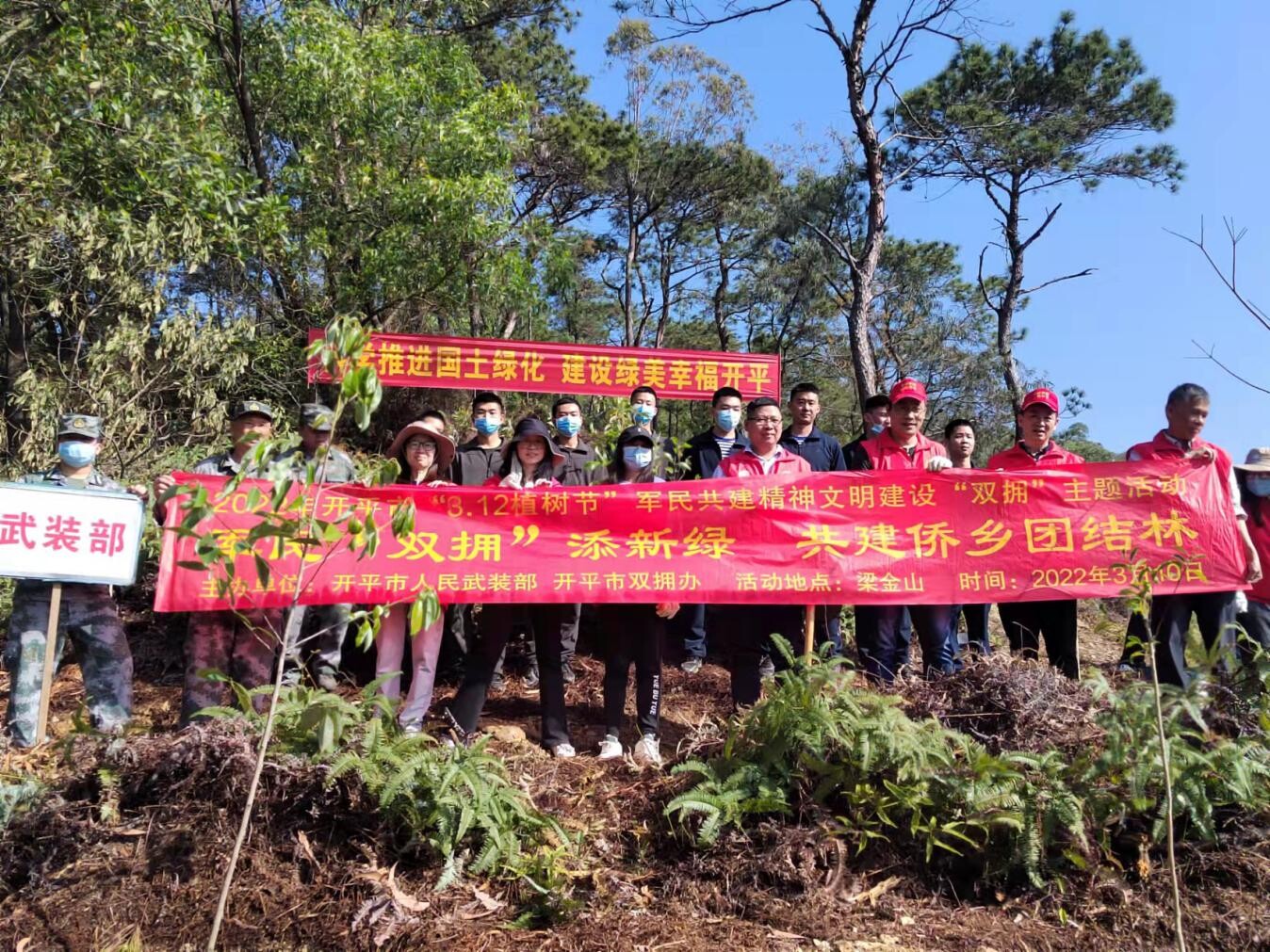 和煦的阳光,温柔的春风,勾勒出梁金山青翠树木的盎然春意。为了给这份春意添一笔新绿,响应习近平主席“绿水青山就是金山银山”的号召,在植树节到来之际,3月10日上午,开平市人武部与退役军人事务局以“军民‘双拥’添新绿,共建侨乡团结林”为主题,联合驻地部队官兵开展义务植树活动。