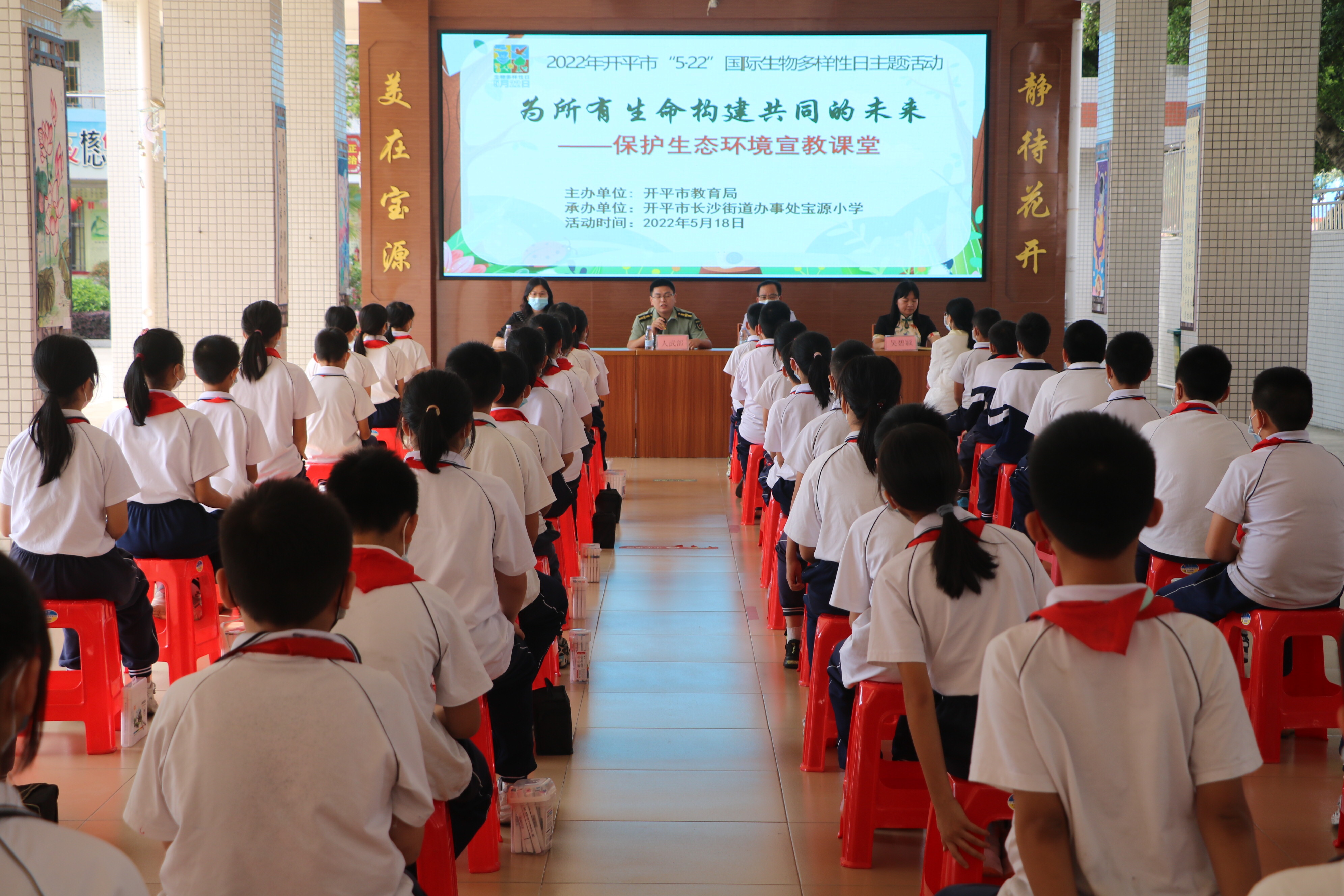 5月18日,开平市教育局联合市人武部在开平市长沙街道宝源小学围绕国际生物多样性日,以“为所有生命构建共同未来”为主题开展生态环境保护主题宣传教育和现场绘画活动,市人民武装部劳伟清同志作《人与大自然和谐相处之道》专题宣讲,倡议学生参与、支持生物多样性保护工作,爱护大自然,成为保护生物多样性的参与者、监督者、行动者,并向参与现场活动的100名学生送上精美的礼品。