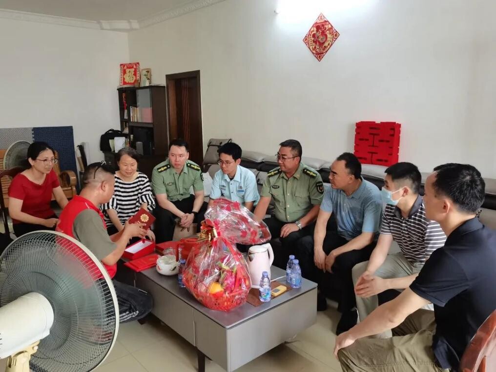 5月31日,开平市人民武装部、市退役军人事务局、长沙街道武装部及退役军人服务站一行组成报喜团,来到现役军人陈涛家中,将三等功喜报和慰问金送到家属手上。长沙街道党工委委员、武装部部长何永富为家属戴上了“光荣军属”绶带,并向他们表示热烈祝贺和崇高敬意。接过喜报,陈涛家属脸上洋溢着喜悦和自豪的笑容。报喜团和军人家属进行亲切交谈,详细了解他们的身体状况和生活情况,感谢他们为祖国培育出优秀的青年,为党和国家做出贡献,以实际行动为家乡增光添彩,并鼓励他们一如既往支持孩子安心服役、建功军营,争取再创佳绩,同时叮嘱他们有任何困难要及时向有关部门反映。