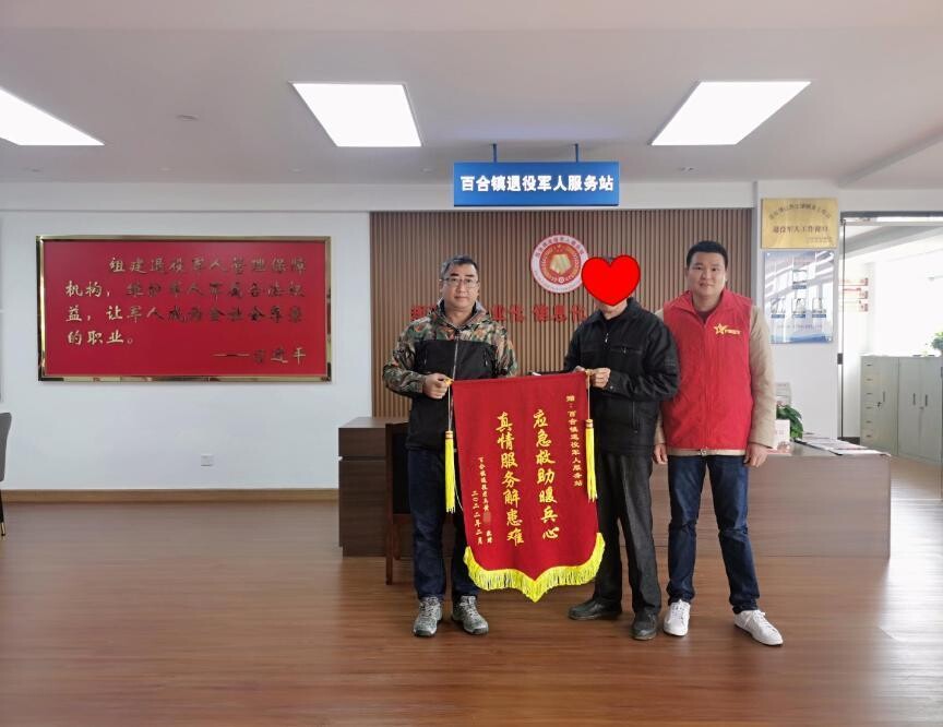 这面锦旗不仅是对百合镇退役军人服务站工作的认可,它同时也是一种鼓励,更是一种鞭策。下一步,百合镇将继续带着使命、带着责任、带着感情扎实做好退役军人及其他优抚对象的服务工作。