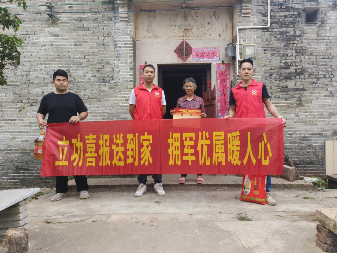 慰问组深入走访温嘉宝、梁栋培、何伟源、张铭溢、余回就等五名优秀士兵家庭,将喜报和慰问金送至家属手中,向军属们表示热烈的祝贺,并感谢军属们一直以来的大力支持和默默付出,为国家和部队培养出了优秀军人。
