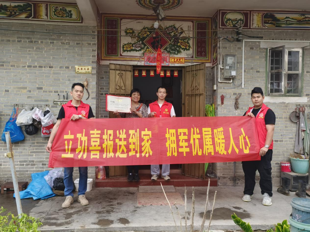 为进一步弘扬拥军优属、拥政爱民的光荣传统,营造关心关爱、尊崇军人军属的浓厚氛围,3月22日,水口镇退役军人服务站开展为荣获“四有”优秀士兵和安保先进个人送喜报的活动,把党和政府的关心关爱传递到军人军属们的心坎上。