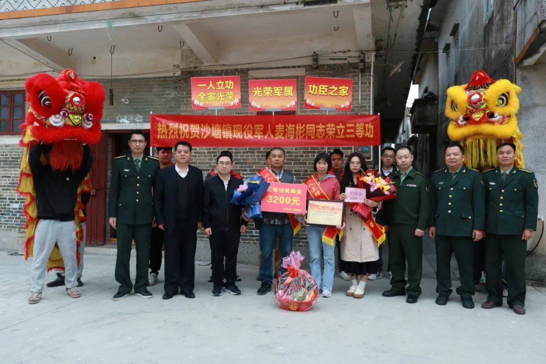 为弘扬拥军优属的光荣传统,增强军人军属荣誉感获得感,营造“一人立功,全家光荣”浓厚氛围和鲜明导向,2月6日,开平市退役军人事务局联合市人民武装部、沙塘镇组成报喜慰问团,向军属送上喜报以表示由衷祝贺和诚挚感谢,通过简朴而热烈的仪式,进一步激发广大适龄青年参军报国和现役军人安心服役、建功军营的政治热情。