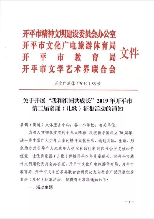 童谣征集|“我和祖国共成长”2019年开平市第二届童谣(儿歌)征集活动来啦